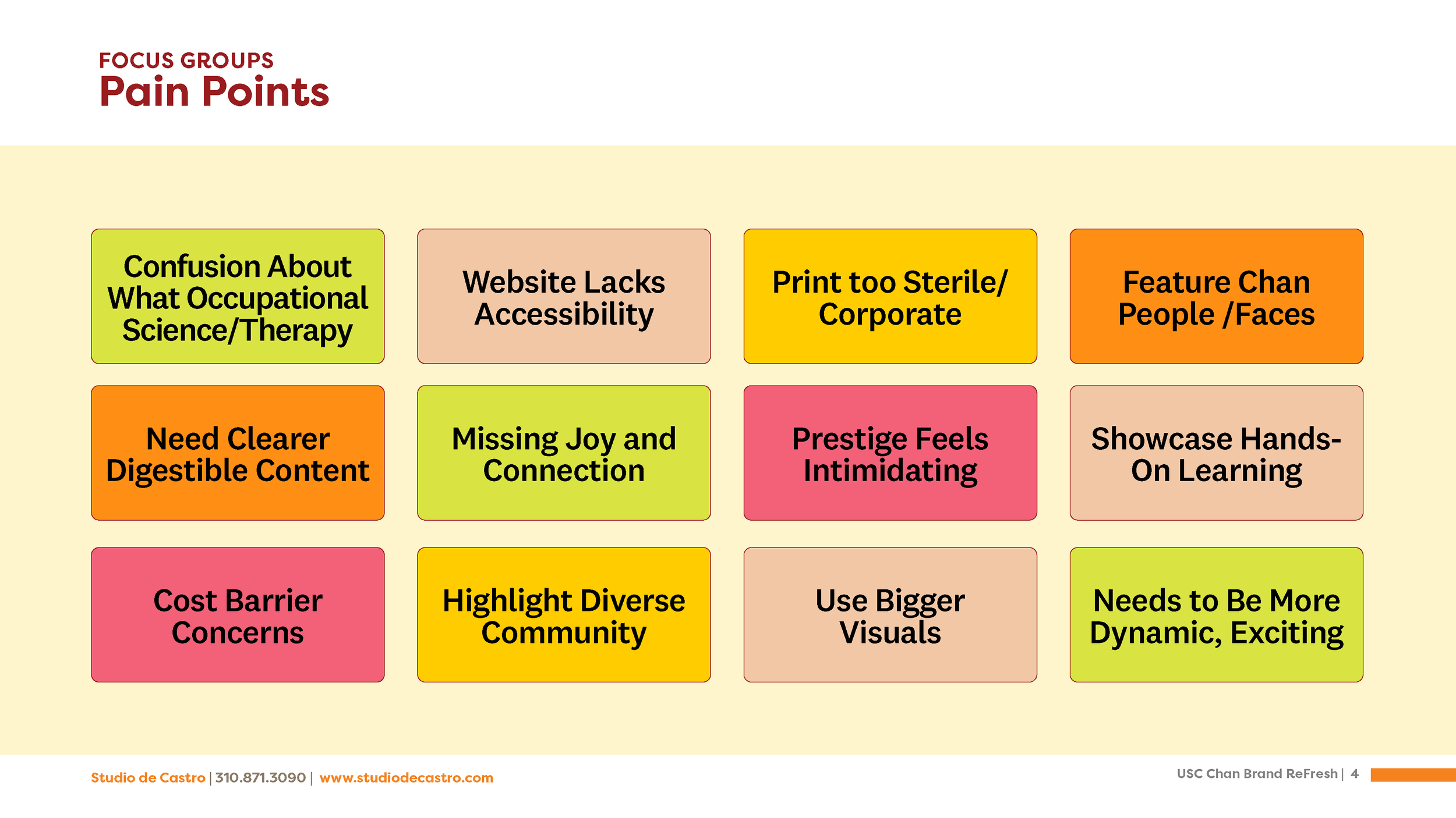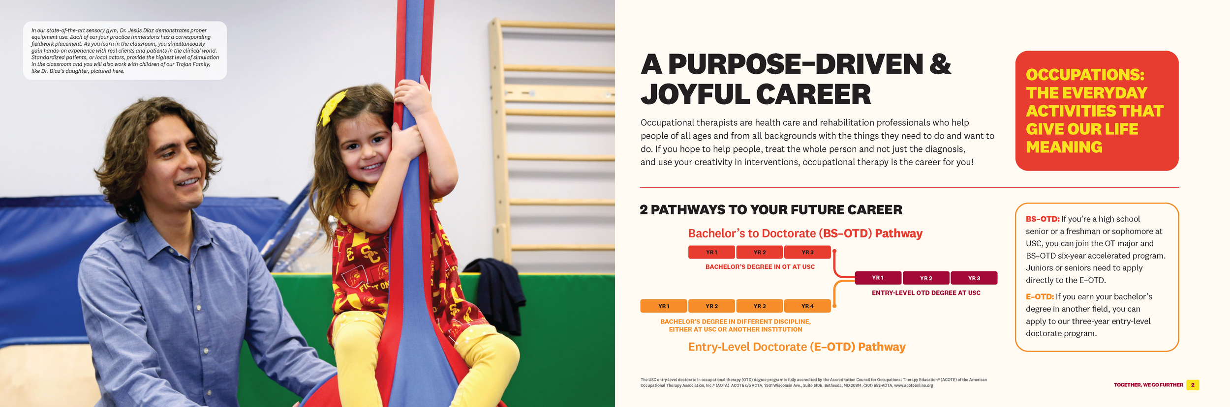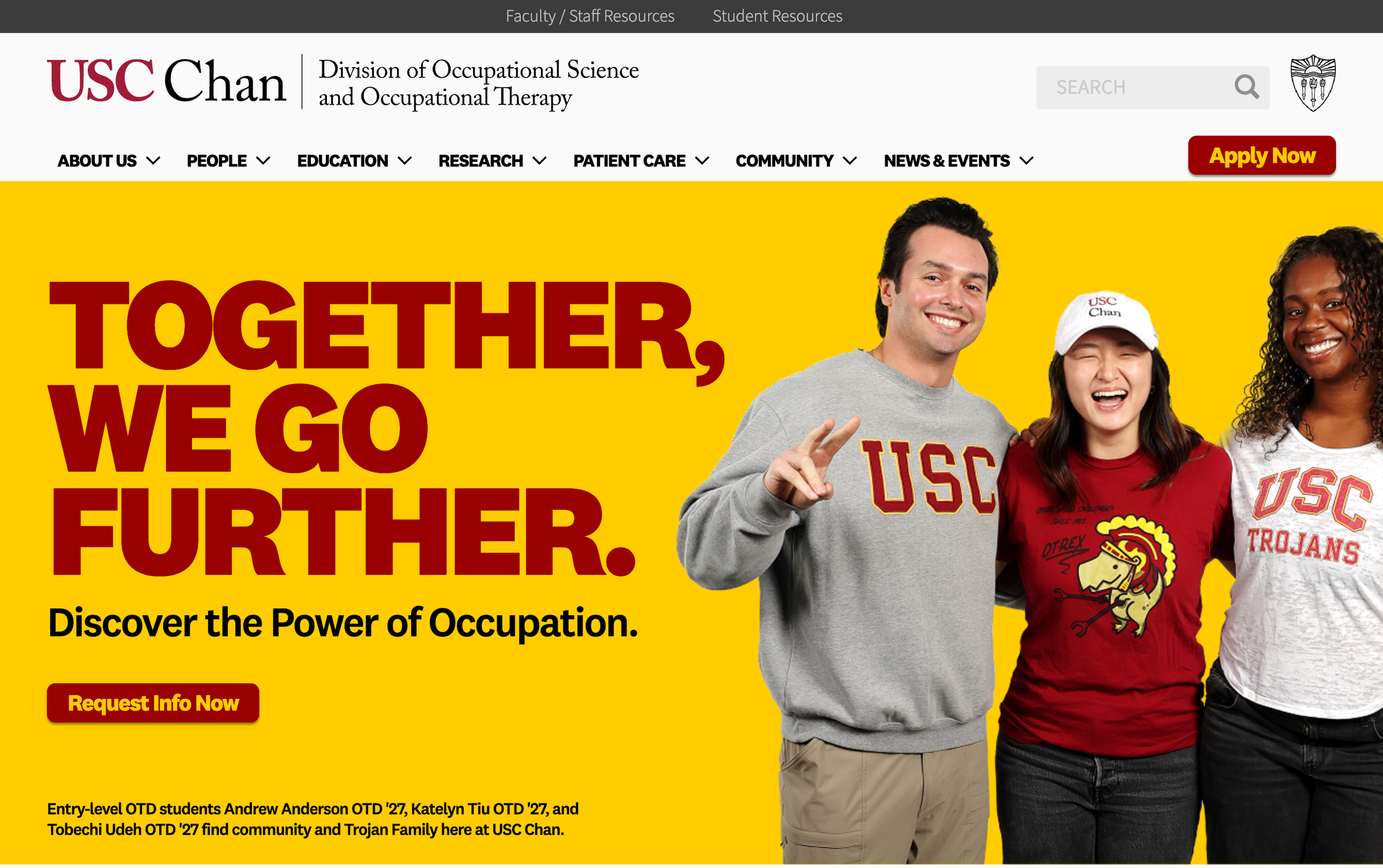 USC Chan’s Division of Occupational Science and Occupational Therapy needed a modern, accessible redesign of its website and print materials to align with USC’s brand and reflect its human-centered mission. The existing assets felt outdated and failed to capture the vibrant, supportive Chan community.